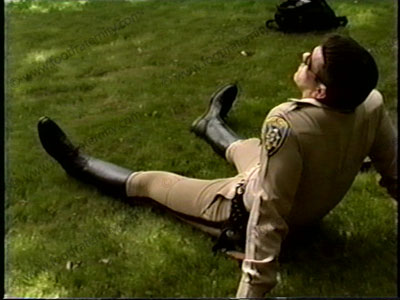 First silent films & clips of Travis in CHP uniform on duty, then in yard as his boots & white sox are pulled off. Then inside for barefoot only service. Licking, kissing, sucking the perfect feet of this stud. All bare foot scenes are "Close ups" only of foot worship. No verbal.