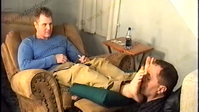 Relaxing in Lazy-boy with his bitch pinned at his socked feet, super straight, basketball jock, Taylor dominates & takes over 100 of his slave’s DVDs while the bitch has to smell & worship his sweaty socks. He totally takes control of all as he rules, teases, laughs, dominates & does water sports. He sets the rules & is very cocky & laughs as he enjoys the power that we pay to be dominated & humiliated by him while serving his feet. Socks come off for bare foot action while he gives orders & comments. Two views, one full, one close (tops & bottoms of feet).