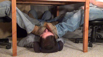 Graham & Burke are playing cards at the table while a slave sissy has to follow their orders while they humiliate him under the table while they are playing cards. They have slave pinned at their feet while they mock him as he has to serve their Timberland boots, sweaty white socks and bare feet while they ignore him and make comments about what they can do. They take off their shirts to show off their muscles in wife beaters. Then they have a huge loogie-spitting contest of trying to land the most loogies in the foot sissy's face, getting their jock spit all over the face in humiliation. They tease and tease, humiliating the slave under their feet. They wipe their feet in the slave’s face, ordering adoration and worship. Slave removes boots for sock action then bare foot action. They laugh about the scene, making many cocky comments while slave sniffs his sweaty sox. Solid foot/face contact. Many humiliating comments as they totally dominate the sissy slave. Total sock and bare foot in the face. They tease, humiliate and dominate, and verbal abuse and constantly laughs at their control. They spit food in his mouth, shove toes and feet into the bitch’s face. They really tease and torment and call him humiliating names as their bare feet & toes kissed, sniffed, sucked, licked & serviced. Both still being teenagers laugh at the power they really have. They realize that they have more control simply because they are straight. Verbal talk & teasing, These jocks forces him to submit to the power of their heterosexuality. Toe sucking, and worship. Toe wiggling, and gifts must be given to the winner. Three hot views of this scene, one showing more of Graham, one showing more of Burke & one close up of the slave under the table. Much teasing foot power and domination. Very hot to have these buddies team up to do this to foot sissy foot sissys. They LOVE it, and want more and more! Incredibly humiliating & dominating. Four macho, jock feet at one time - too hot! The scene is so long it takes two DVDs to cover it all!
